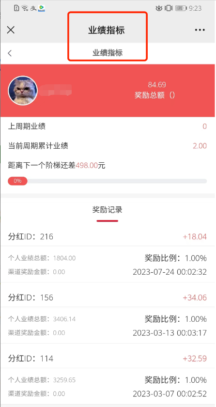会员获得业绩奖励后后台就会有奖励记录
